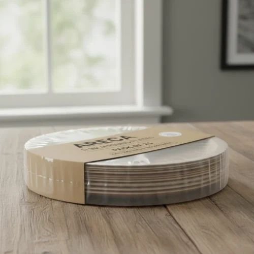 10 Inch Round Areca Palm Leaf Plate | shallow 1 inch Profile | Export-Grade Bio-Disposable | MOQ 1000