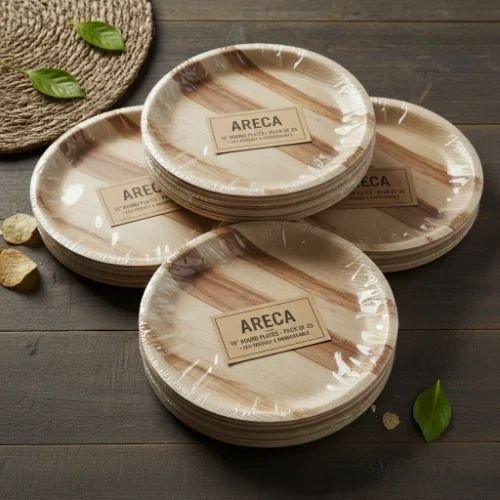 10 Inch Round Areca Palm Leaf Plate | Shallow Profile | Export-Grade Bio-Disposable | MOQ 1000