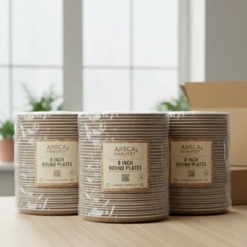 8 Inch Round Areca Palm Leaf Plate | Deep Profile | Export-Grade Bio-Disposable | MOQ 1000