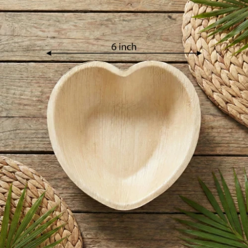 6 Inch Heart Shape Areca Palm Leaf Bowl | Deep Profile | Export-Grade Bio-Disposable | MOQ 1000