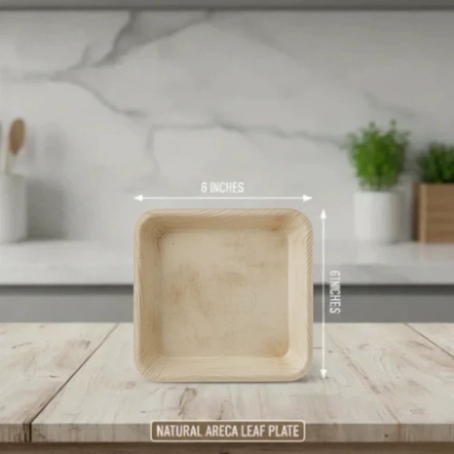 6×6 Inch Square Areca Palm Leaf Deep Plate | 2.5 Inch Depth | Export-Grade Bio-Disposable | MOQ 500
