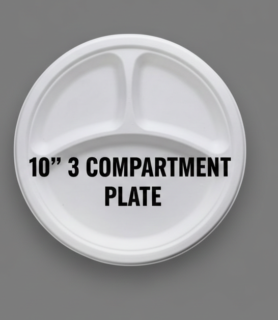 10 Inch 3-Compartment Bagasse Plate | Portion Segregation | Compostable Tableware | MOQ 600