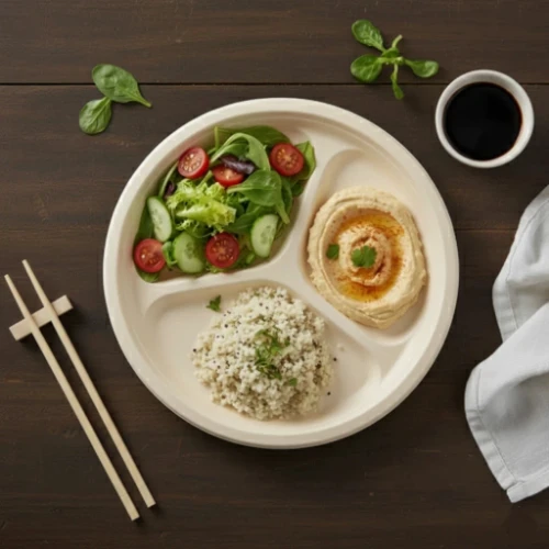 This 10 inch round 3-compartment plate is specified for food service operations / catering operations that need separation without secondary liners. The 3-compartment layout is used for portion control where a main item and two side servings must remain distinct during packing and distribution. It reduces cross-mixing in liquid-rich foods and supports a spill-proof alternative in meal trays where sauces or gravies can migrate across a flat surface. The round outer geometry keeps stack alignment consistent while the internal partitions stabilize the load during hand-carry and last-mile movement.