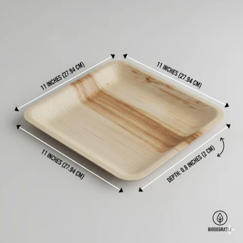 11×11 Inch Square Deep Areca Palm Leaf Plate – Export-Grade Bio-Disposable