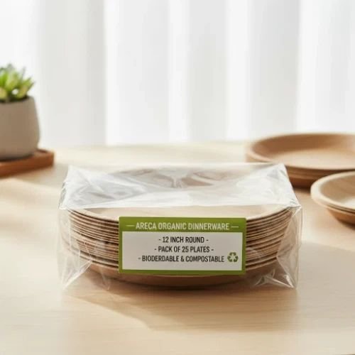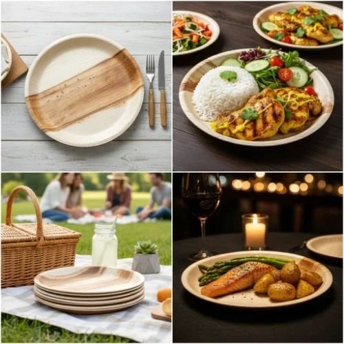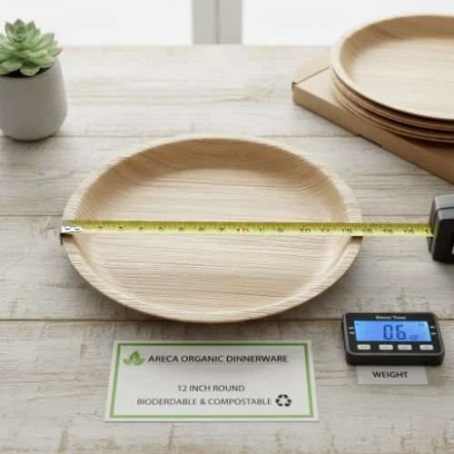 The plate is manufactured from the naturally shed sheath of the areca catechu palm and heat-pressed at 180°C to achieve structural rigidity and a semi-hydrophobic surface. Industrial-grade durability is supported by a natural wall thickness of 1.5–2.5 mm, ensuring consistent performance across a thermal range of −20°C to +120°C. Liquid resistance is maintained for 6–8 hours without deformation under standard service conditions.