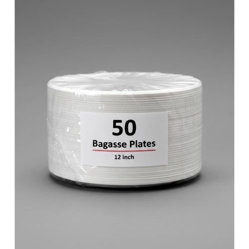 12 Inch Round Bagasse Plate | Large Format | Compostable Tableware | MOQ 600