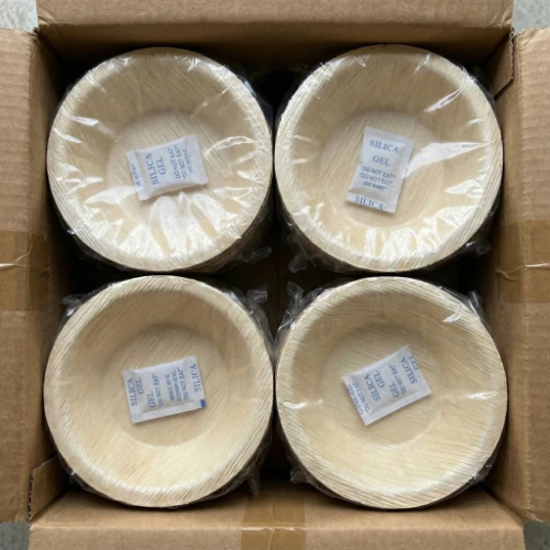 This 4 inch round areca palm leaf bowl is designed to address the need for compact, portion-controlled serving formats in food service and catering operations where liquid or semi-liquid items are handled at scale. The deep 2.5 cm profile supports gravies, curries, desserts, and side servings without spill-over, while the round geometry ensures consistent portioning and efficient placement in multi-dish meal setups across institutional and commercial service lines.