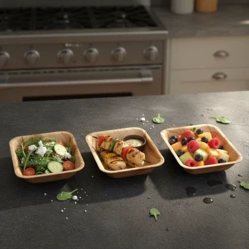 The Space-Efficient Choice for Structured Plating The 4 × 4.5 Inch Rectangular Areca Palm Leaf Bowl is a specialized serving vessel designed to maximize tray space and shelf efficiency. Unlike traditional round bowls that leave "dead space" on serving trays or retail shelves, this rectangular profile offers a modular, bento-style fit ideal for structured catering and combo meals. With a deep 2.5-inch profile, it provides the perfect volumetric capacity for distinct side portions—such as gravies, heavy curries, desserts, or rice servings—ensuring a clean, organized presentation for professional food service operations.