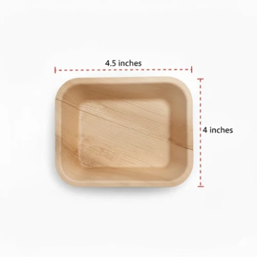 4 × 4.5 Inch Rectangular Areca Palm Leaf Bowl – Export-Grade Bio-Disposable
