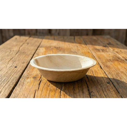 Engineered for Thermal & Liquid Endurance Weighing approximately ~19.2g, this bowl offers a superior weight-to-volume ratio compared to paper or plastic alternatives. The manufacturing process involves heat-pressing the Areca Catechu sheath at 180°C, creating a dense, hydrophobic surface that resists absorption. This ensures the bowl can hold hot liquids (up to 120°C) and oil-heavy curries for 6–8 hours without losing structural integrity or becoming soggy. The 1.5–2.5 mm wall thickness provides excellent insulation, ensuring safe handling of hot contents.