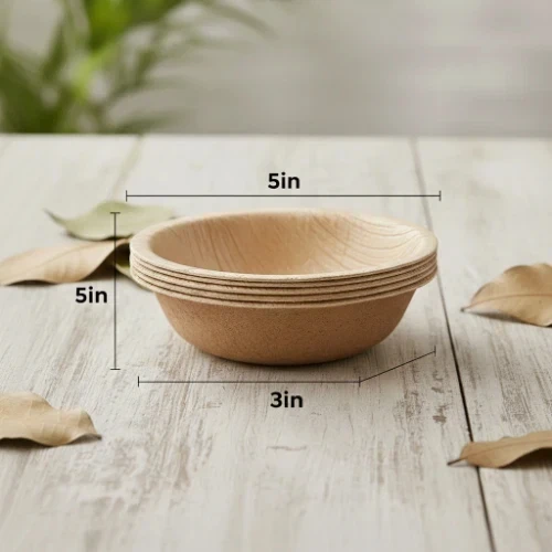 5 × 5.5 Inch Areca Palm Leaf Bowl – Export-Grade Bio-Disposable