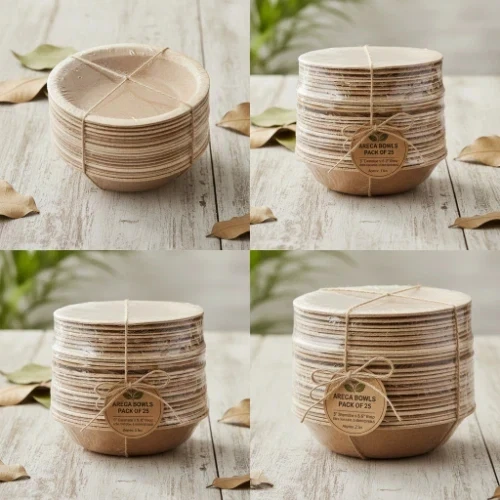 Engineered for Thermal & Liquid Endurance Weighing approximately ~19.2g, this bowl offers a superior weight-to-volume ratio compared to paper or plastic alternatives. The manufacturing process involves heat-pressing the Areca Catechu sheath at 180°C, creating a dense, hydrophobic surface that resists absorption. This ensures the bowl can hold hot liquids (up to 120°C) and oil-heavy curries for 6–8 hours without losing structural integrity or becoming soggy. The 1.5–2.5 mm wall thickness provides excellent insulation, ensuring safe handling of hot contents.