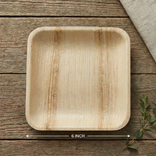 6×6 Inch Square Areca Palm Leaf Plate | Global B2B Procurement & Export