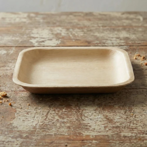 Constructed from the renewable sheath of the Areca palm, the plate is formed under 180°C heat and pressure to achieve a rigid, splinter-free finish. The engineering logic prioritizes surface flatness and rim strength; with a wall thickness of 1.5–2.5 mm, the plate resists warping even when loaded with hot foods (thermal range -20°C to +120°C). Its semi-hydrophobic surface provides liquid resistance for 6–8 hours, effectively managing moist appetizers or dressed salads without becoming soggy.