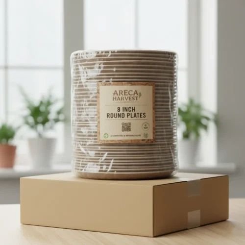 Areca Products / 8 Inch Round Areca Palm Leaf Plate | Deep Profile | Export-Grade Bio-Disposable | MOQ 1000