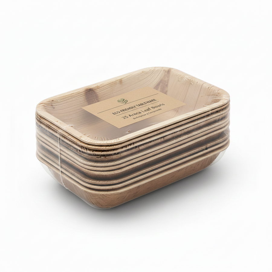 The Smart Solution for Combo Meals & Tray Service The 8 × 6 Inch Rectangular Deep Areca Palm Leaf Plate combines the volumetric capacity of a bowl with the efficient footprint of a rectangular tray. Designed specifically for commercial food service, this "bento-style" container features a substantial 2.5-inch depth, making it the premier choice for serving substantial combo meals—such as rice with heavy gravies, pasta dishes, or dense salads. Its rectangular geometry allows for better space utilization on standard cafeteria trays and retail shelves compared to round alternatives, maximizing display area while minimizing wasted space.