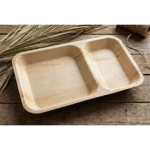 9×6 Inch Rectangular 2-Compartment Areca Palm Leaf Tray – Export-Grade Bio-Disposable