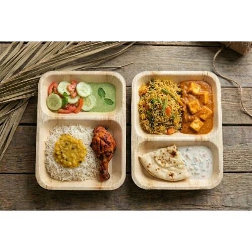 9×6 Inch Rectangular 2-Compartment Areca Palm Leaf Tray | Deep 1.5 Inch Profile | Export-Grade Bio-Disposable | MOQ 1000