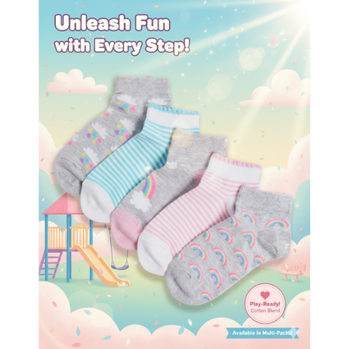 The breathable cotton yarn offers sweat absorption and improved air circulation, keeping feet cool and comfortable during long hours of activity. The elasticated ankle ensures a secure fit without slipping, making them suitable for active play and regular movement. Socks are available across major European and UK size ranges, covering children from early school age to pre-teens.