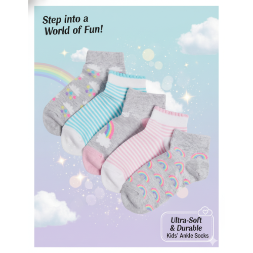 Kids Bamboo Assorted Ankle Length Socks – Pack of 5 (Unisex, Assorted)
